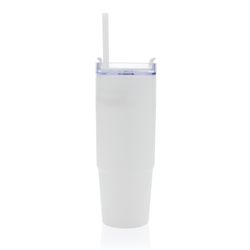 Introducing the Tana double wall plastic tumbler, a 900ml/ 30.4oz tumbler made from 80% recycled material for low impact hydration. The advanced lid features a rotating cap with three positions: a spill-resistant straw opening, a sipping spout, and a fully sealed lid